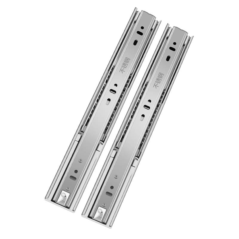 加厚不锈钢抽屉滑轨三节轨阻尼缓冲轨道橱柜静音滚珠导轨侧装 铰链