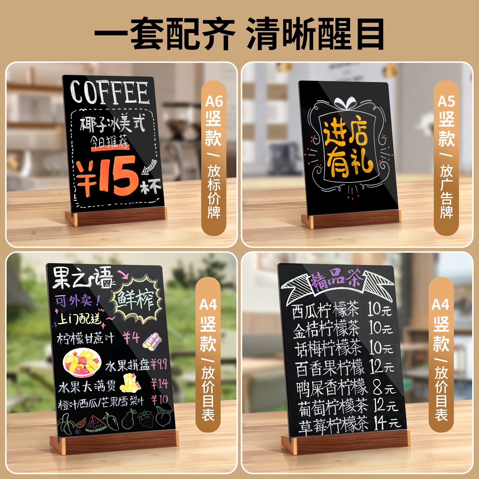 手写菜单小黑板广告牌摆摊用价格展示牌桌牌立牌亚克力台卡A4桌面餐牌菜牌台牌立式 奶茶价目表可擦diy标价牌5