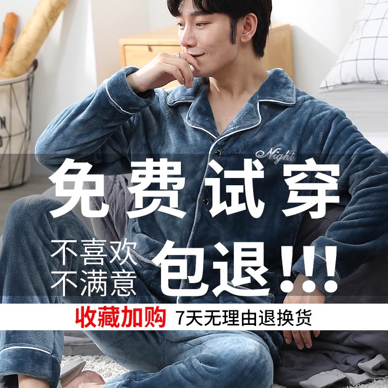 德加绒加厚保暖长袖 新款 大码 秋冬季 抗菌家居服套装 南极人睡衣男款