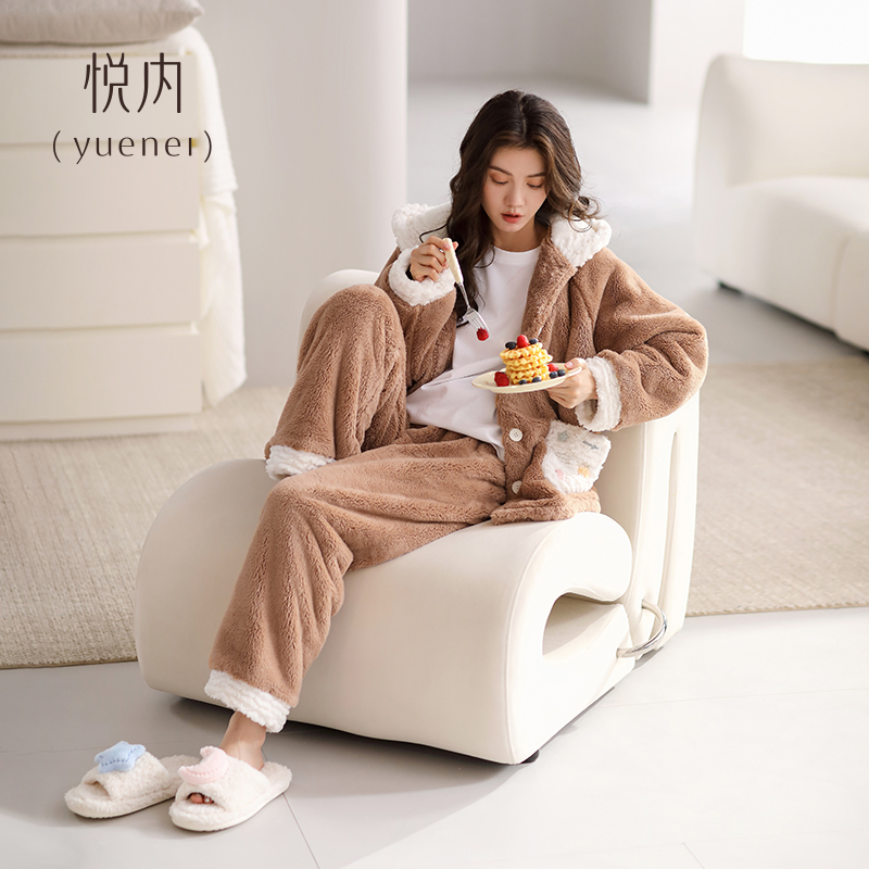 珊瑚绒加绒法兰绒毛绒家居服可爱甜美套装 冬款 秋冬季 悦内睡衣女款