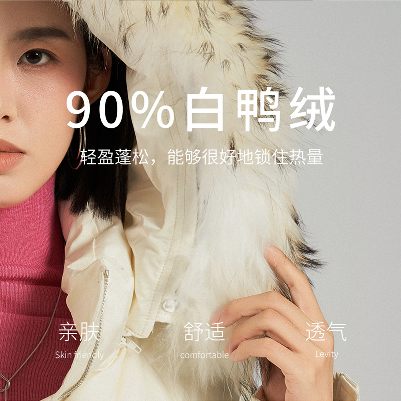 冬连帽羽绒服女修身 新款 波司登90鹅绒显瘦长款 保暖外套 爆款