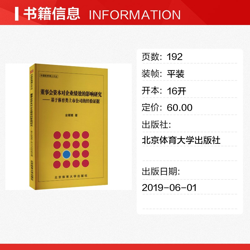 金媛媛 经验证据 著 文化理论文教 图书籍 董事会资本对企业绩效 新华书店正版 影响研究——基于体育类上市公司