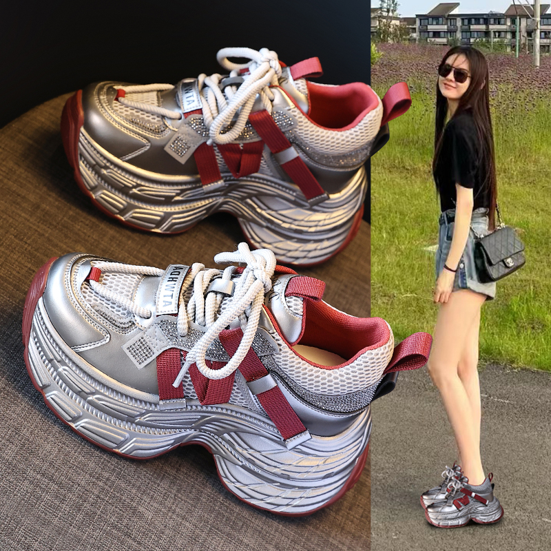 运动鞋 王鹤棣同款 秋网面厚底内增高老爹鞋 男休闲鞋 女 特步嗨6鞋