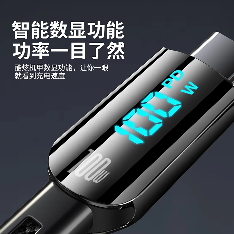 智能数显100W快充数据线typec充电线双头Type C适用苹果华为安卓荣耀typec充电器线PD30W功率显示车载充电线
