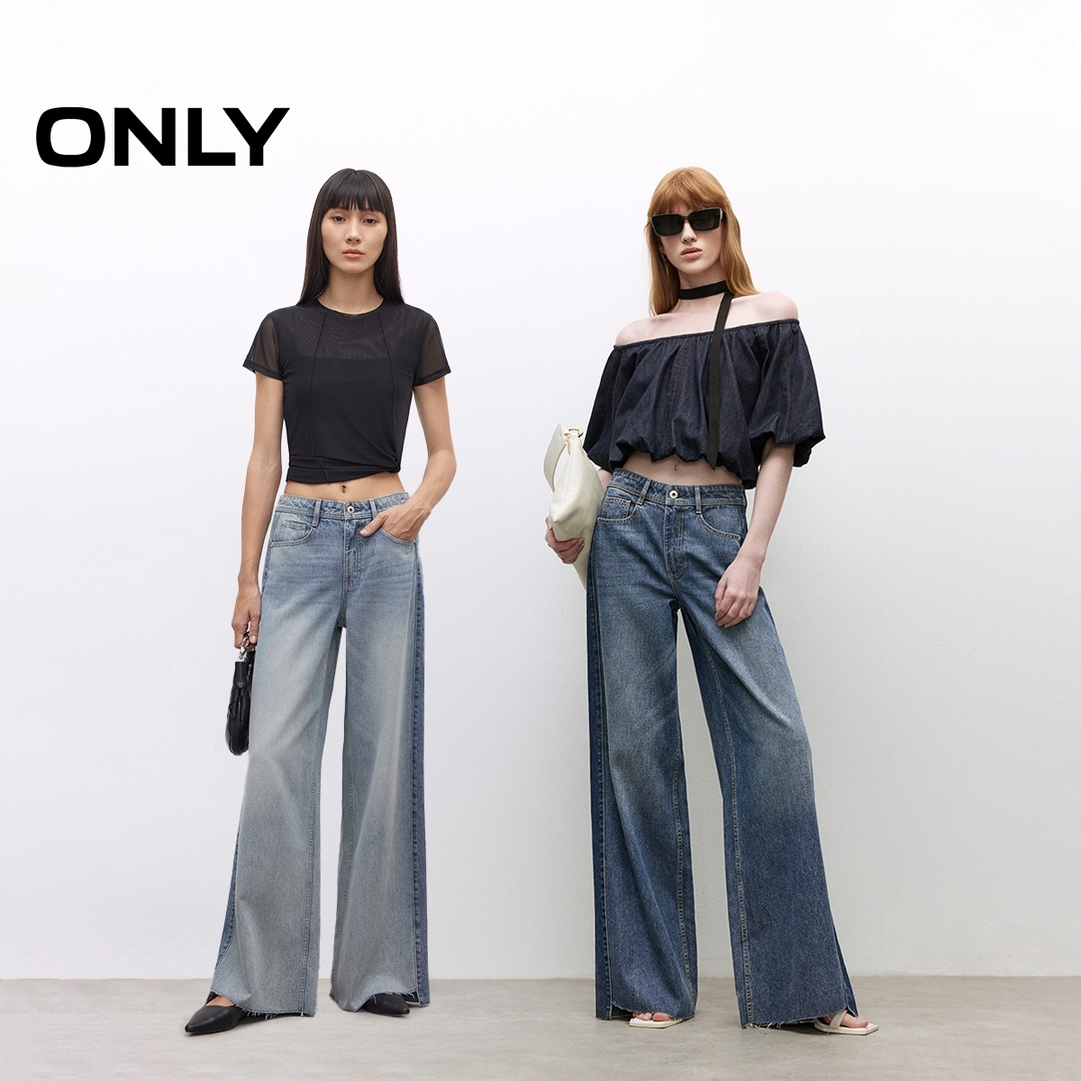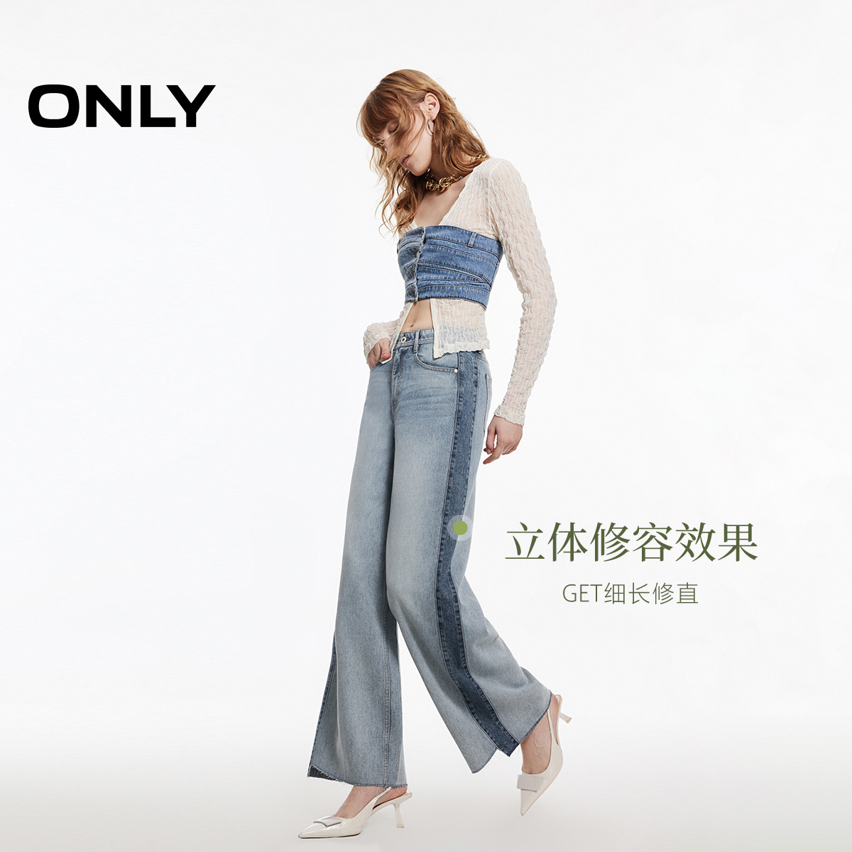 牛仔裤 ONLY2025秋季 复古解构剪裁设计宽松高腰阔腿裤 时尚 女 新款