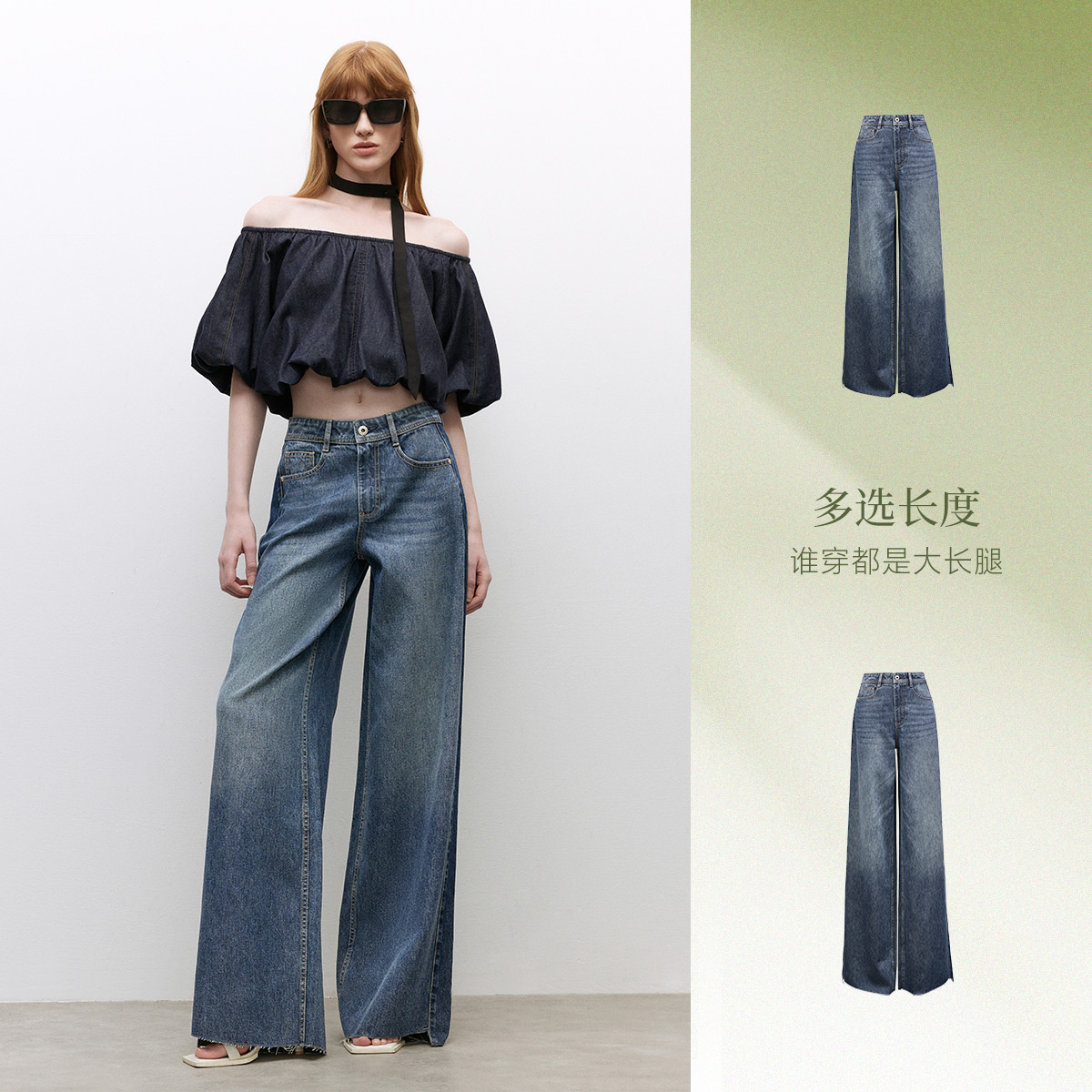 复古高腰宽松显瘦显高阔腿长裤 逸阳窄版 新款 女2025秋季 直筒牛仔裤