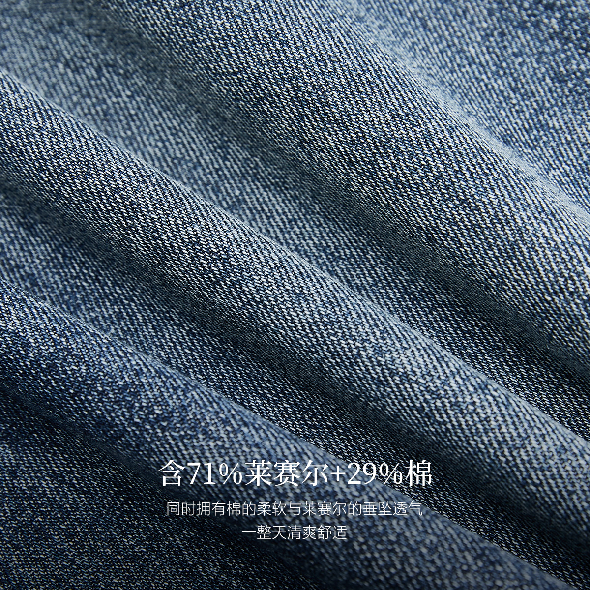 海澜之家轻商务加绒加厚直筒牛仔裤 子男士 秋冬季 保暖长裤 新款 HLA