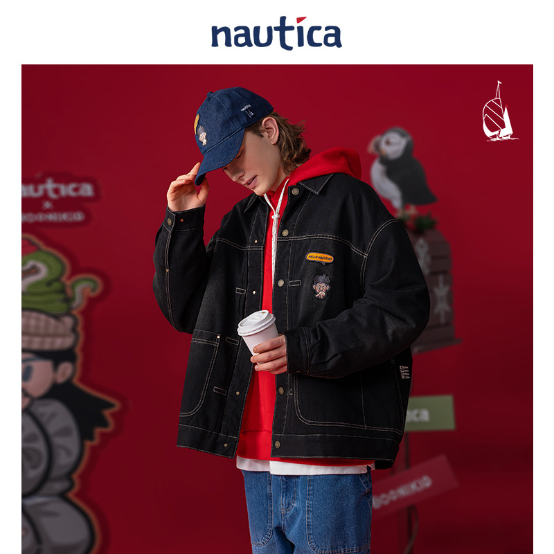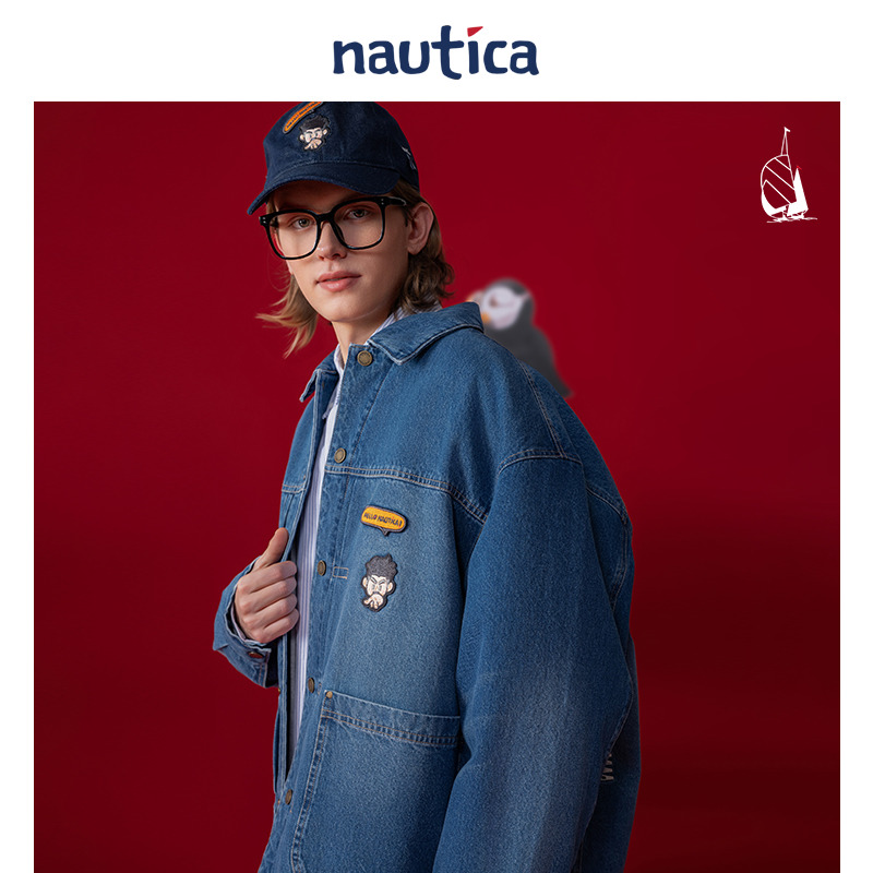 唐狮2025秋季 牛仔外套女巴恩风复古做旧潮牌宽松撞色翻领夹克 新款