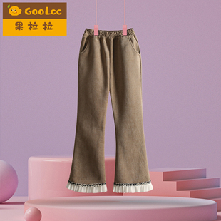 子冬 一体绒儿童裤 小香风女童加绒加厚喇叭裤 女宝宝中大童显瘦修身