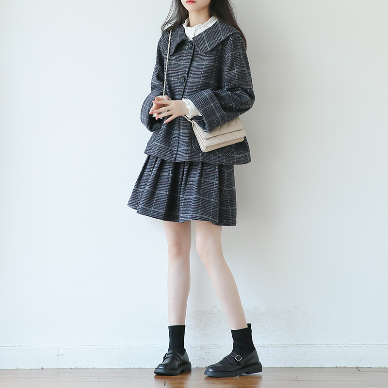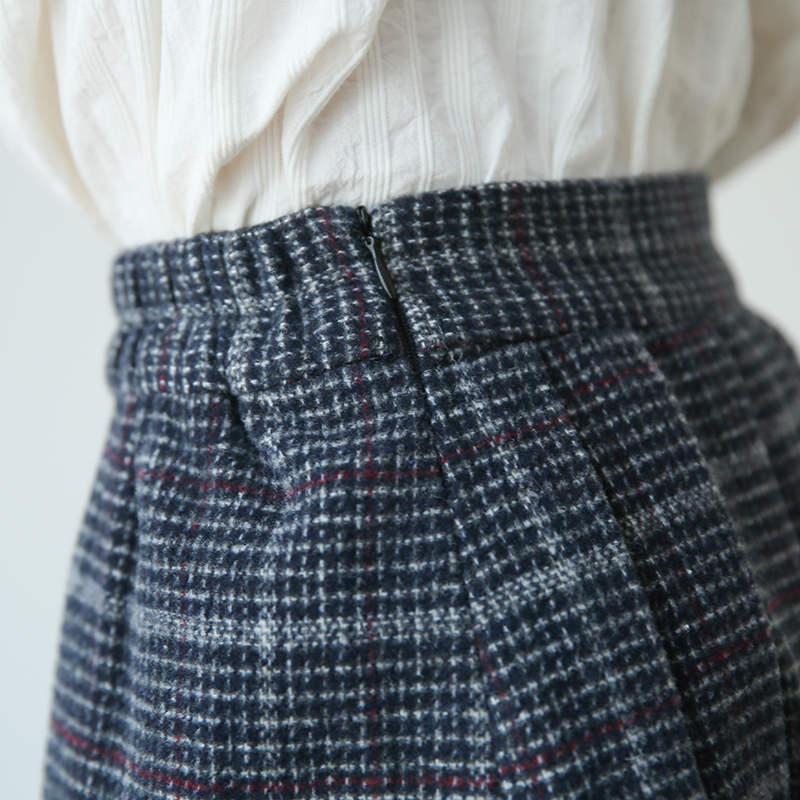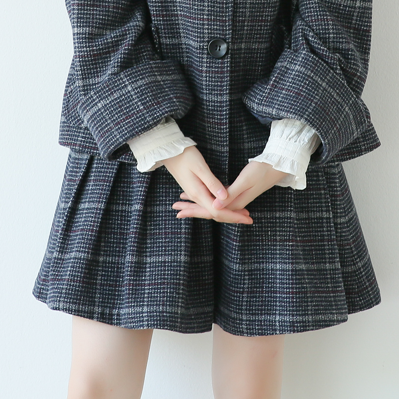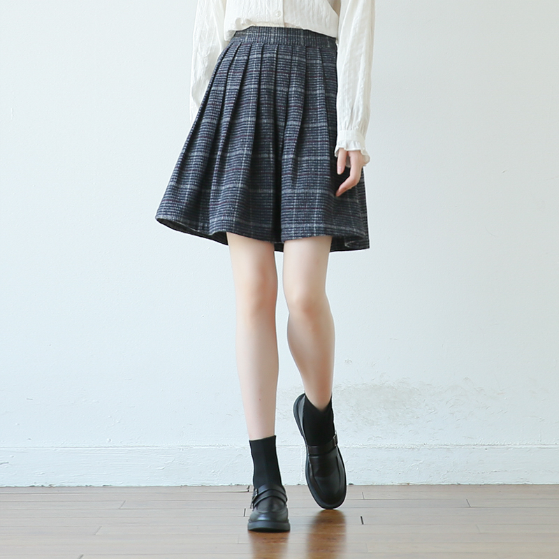 suin2025秋冬新款 日系学院风小个子毛呢格子百褶半身裙女a字短裙