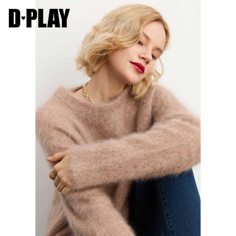 新新慵懒风针织衫 秋装 燕麦巧克力色马海毛毛衣 黑标 DPLAY
