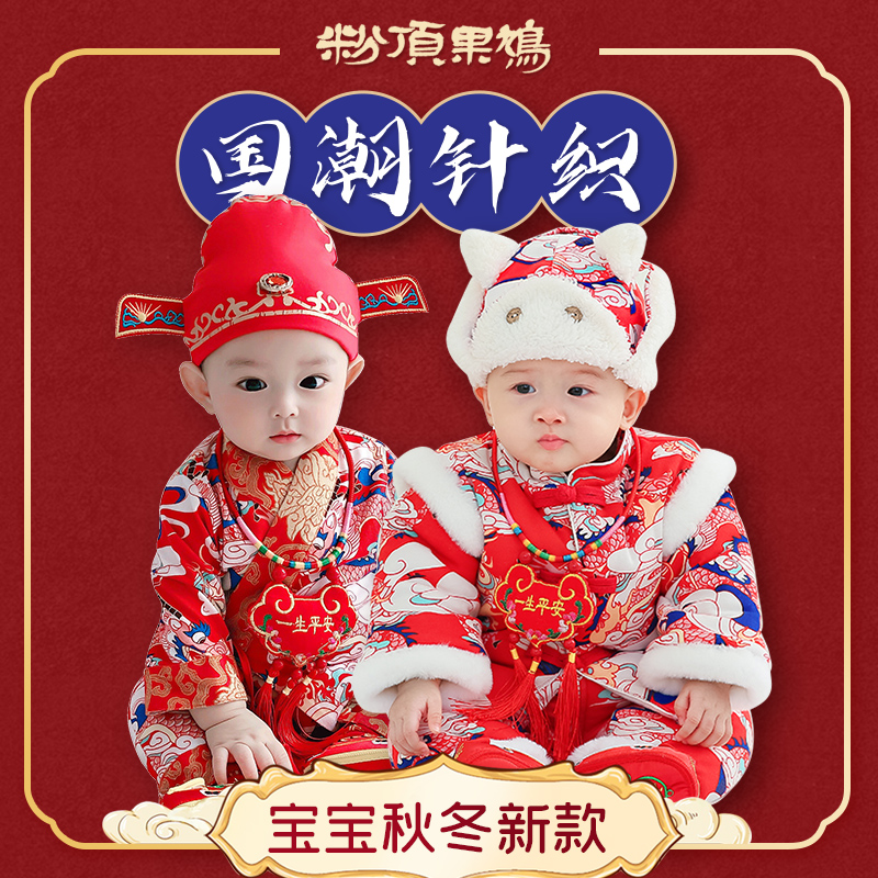 冬季 加绒加厚男女宝宝抓周礼服婴儿连体衣儿童过年棉衣一周岁套装