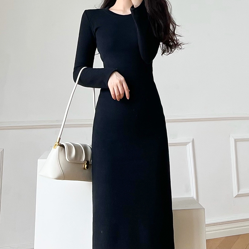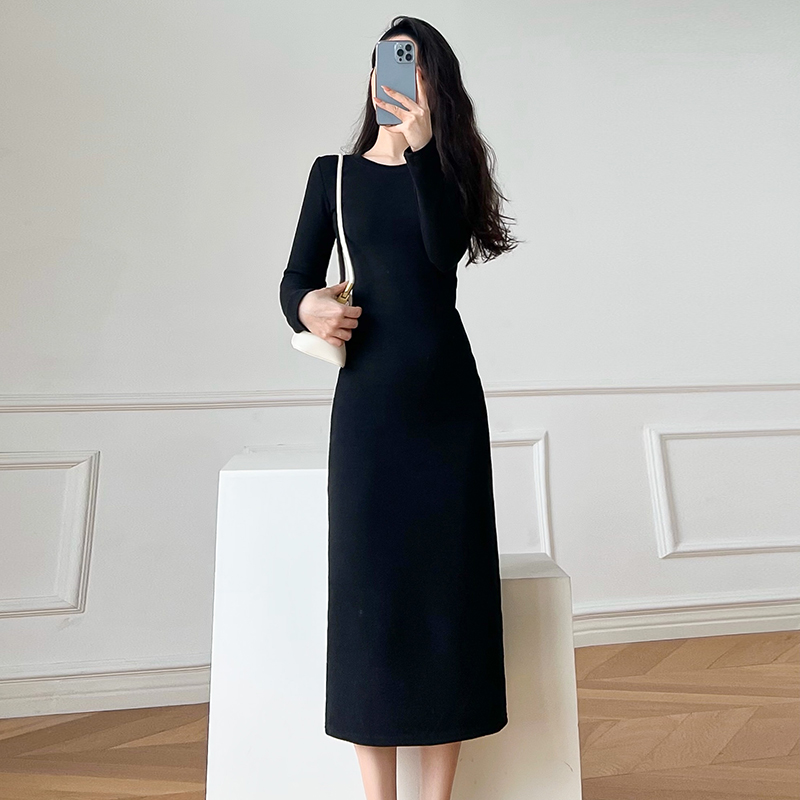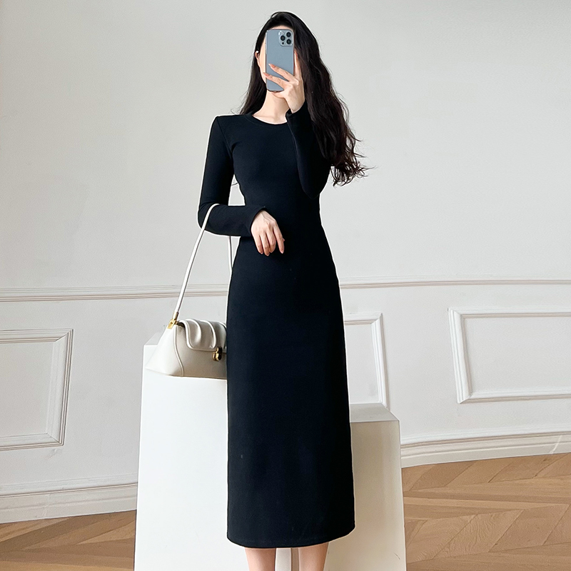连衣裙女秋冬款 显瘦内搭加绒加厚打底长裙 女士包臀过膝t恤裙修身