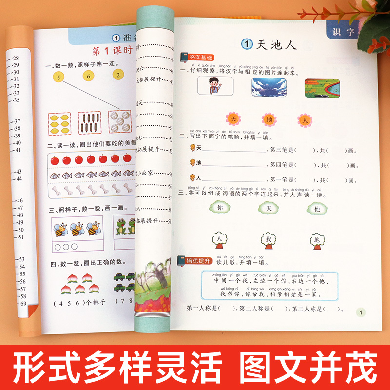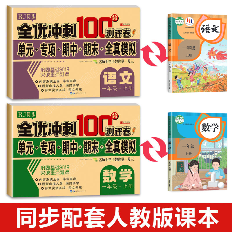 一课一练 语文数学教材同步练习册人教版 小学生课时作业本思维专项强化综合训练题练习与测试 试卷测试卷 一年级上册同步训练全套