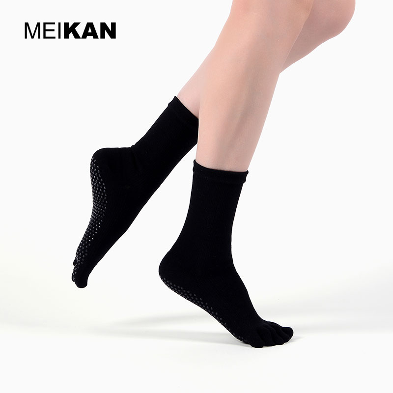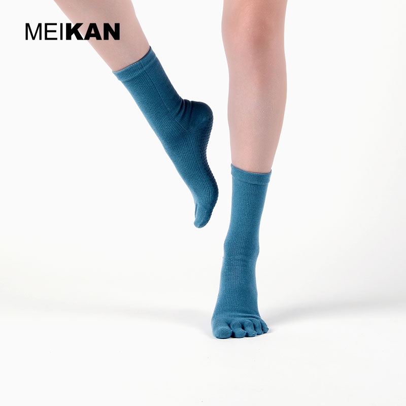 五指瑜伽袜子防滑专业女普拉提训练室内运动专用健身长筒分趾地板