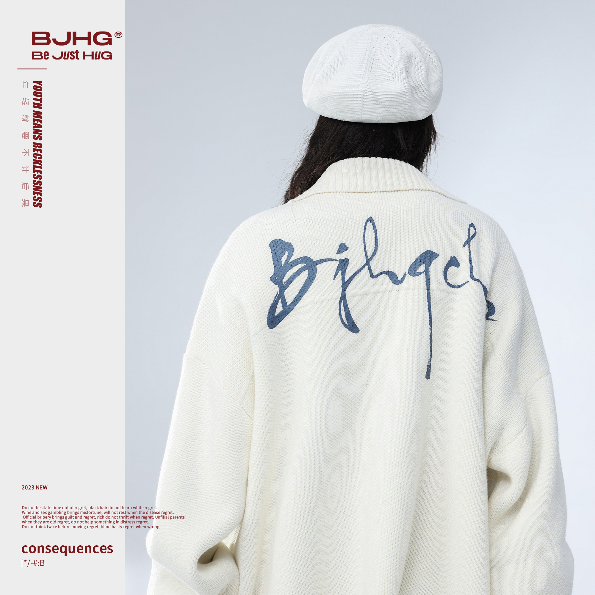 上衣外套女 秋冬潮牌宽松休闲情侣针织衫 BJHG不计后果开衫 毛衣男款
