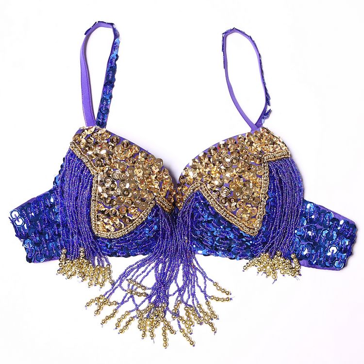 性感表演服装 飞魅 吊须文胸 肚皮舞订金珠片角形吊金珠文胸 新款