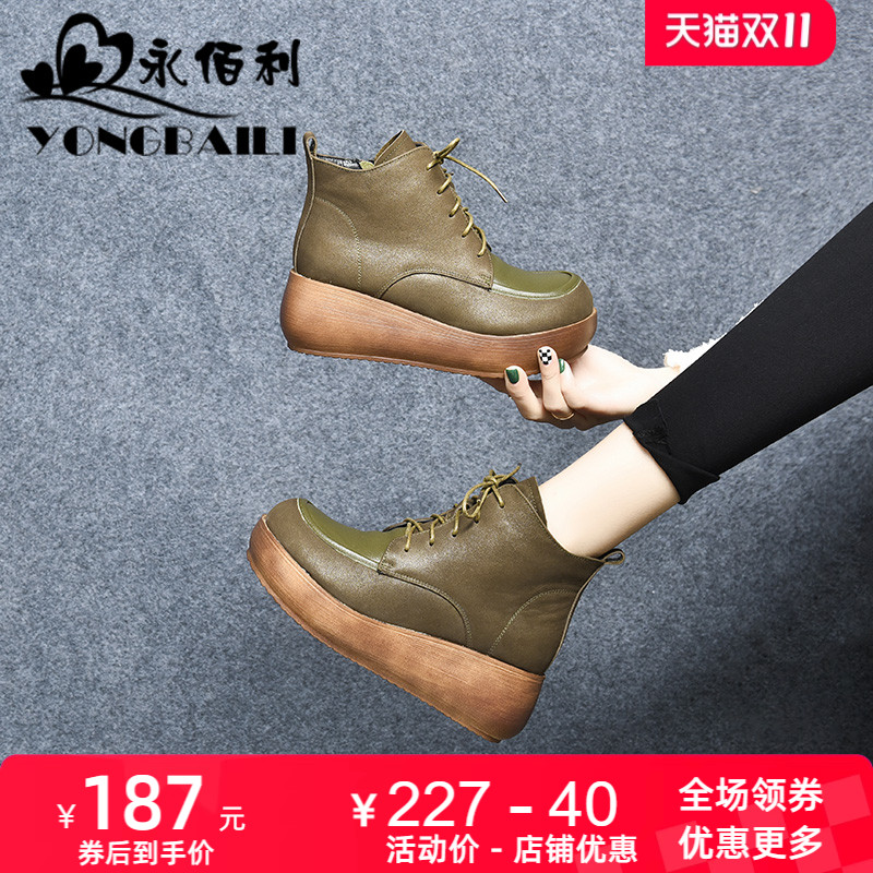 软底厚底女靴子百搭女鞋 真皮高跟马丁靴女冬季 加绒短靴2025新款