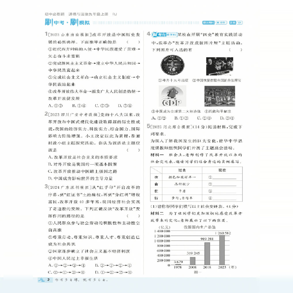 2026初中必刷题道德与法治九年级上册 教材RJ同步练习必刷题道德与法治9年级上必刷题一遍过可搭五年中考三年模拟道法 配套人教版