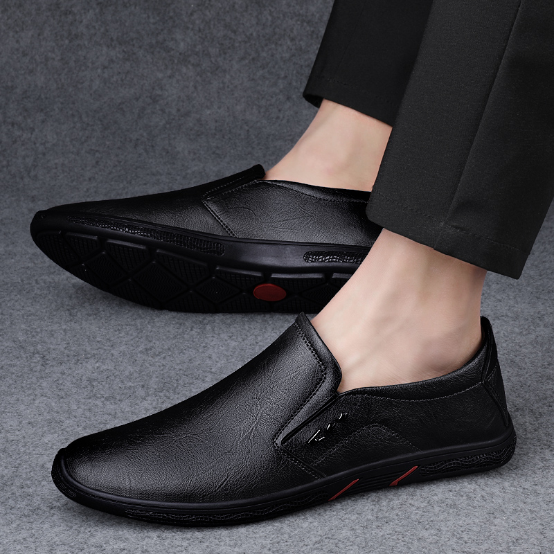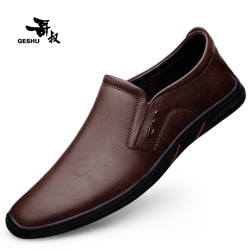 皮鞋 鞋 一脚蹬男鞋 大码 子 羊皮休闲舒适中老年人男款 红蜻蜓爸爸男士