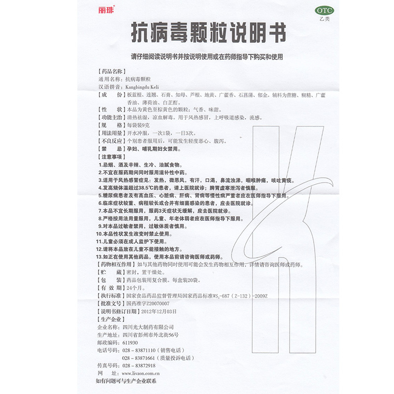 丽珠抗病毒颗粒9g 20袋清热祛湿解毒风热感冒药上呼吸道感染流感