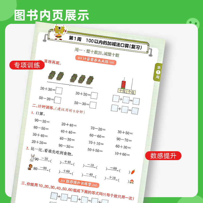 小学数学核心素养数感计算双训练一二三四五六年级上册下册人教版 大全思维训练木叉 小学生数学计算题强化练习口算天天练数学公式