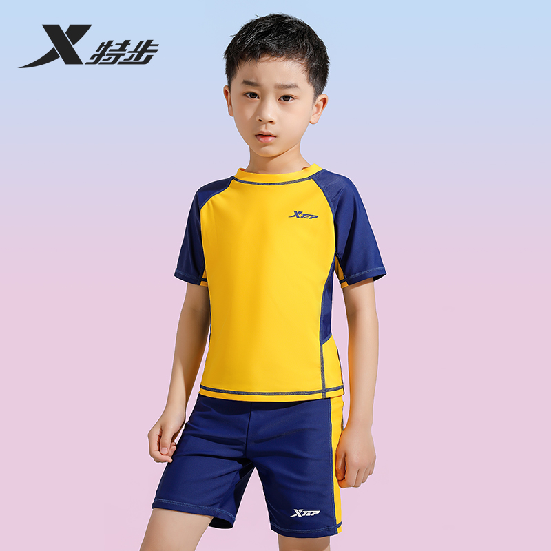 套装 特步儿童泳衣男孩2024新款 速干小童中大童分体温泉游泳衣泳裤