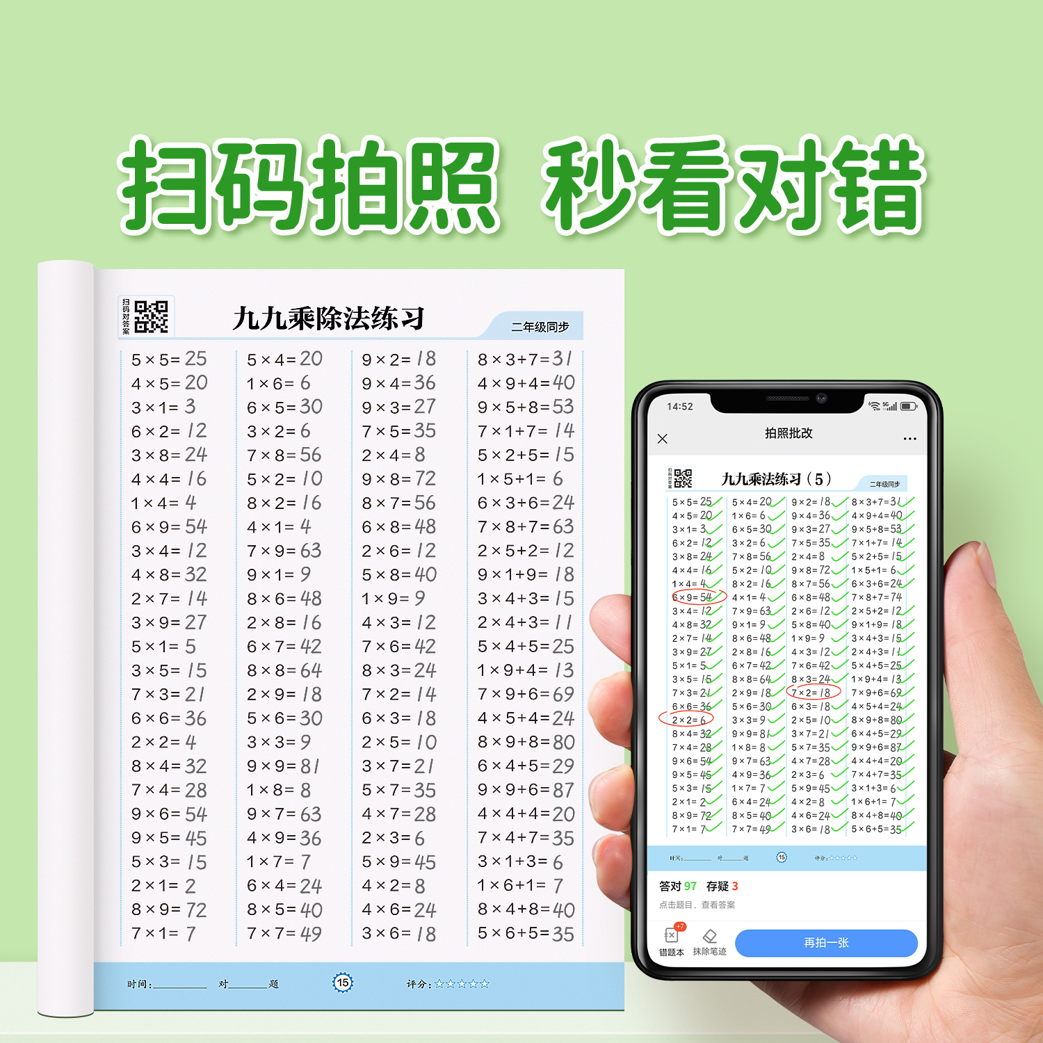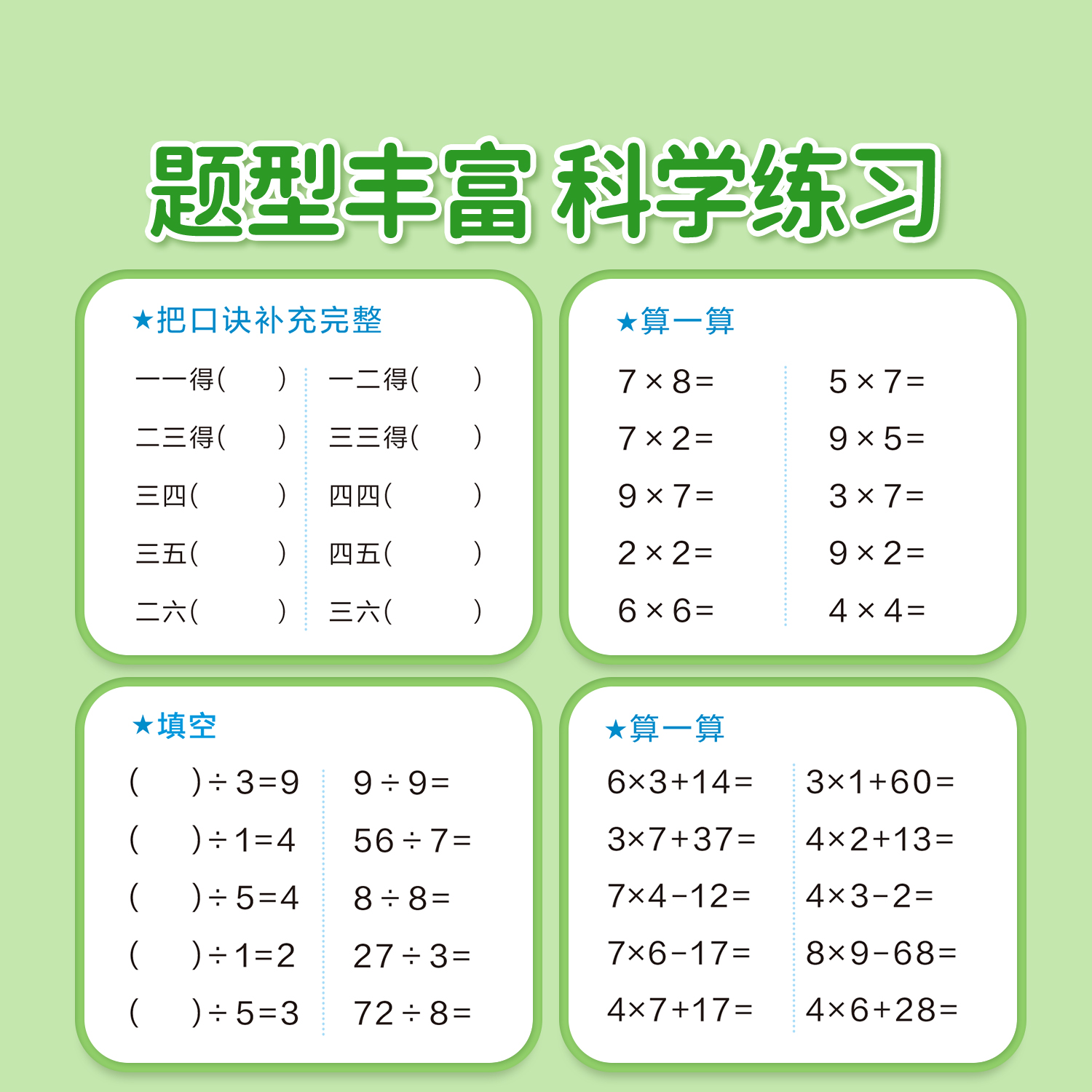 九九乘法表口诀练习题同步二年级表内99乘法除法入门口诀表专项练习册练习本作业本课业本数学口算题卡小学生