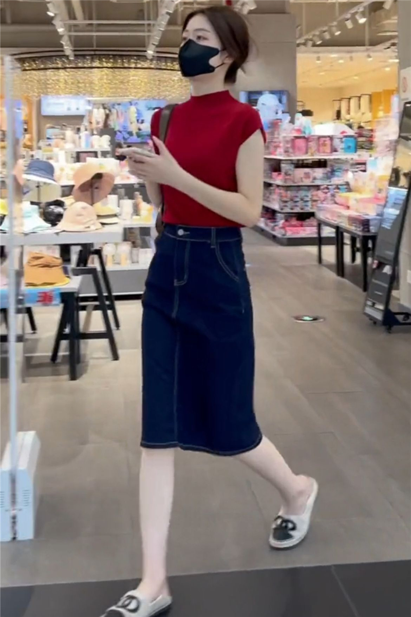 显瘦中领针织衫 半高领无袖 内搭坎肩修身 灰色西装 背心女羊毛打底衫