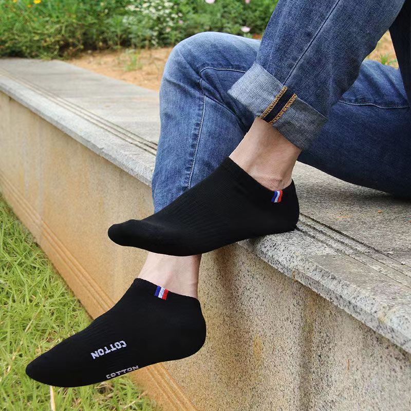 黑色男士 纯棉无骨抗菌吸汗短筒全棉夏季 船袜 薄款 袜子男短袜春秋季