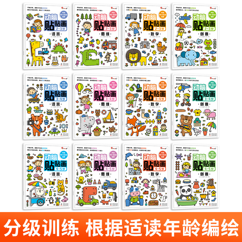 邦臣小红花动脑贴贴画贴纸书2岁3岁4岁贴贴画思维训练3岁贴纸5岁全脑开发贴画6岁游戏书贴纸书绘本专注力幼儿儿童启智开发贴纸书