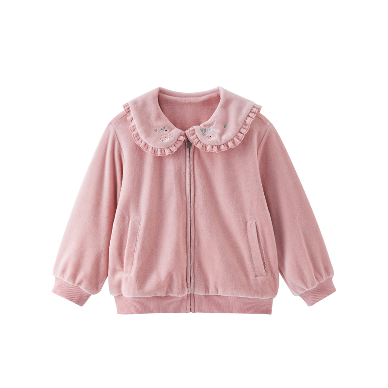英氏童装 衣服YRWBJ32173A 儿童外套女宝丝绒拉链棒球服秋季