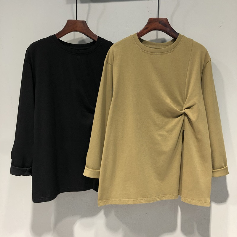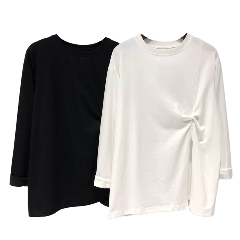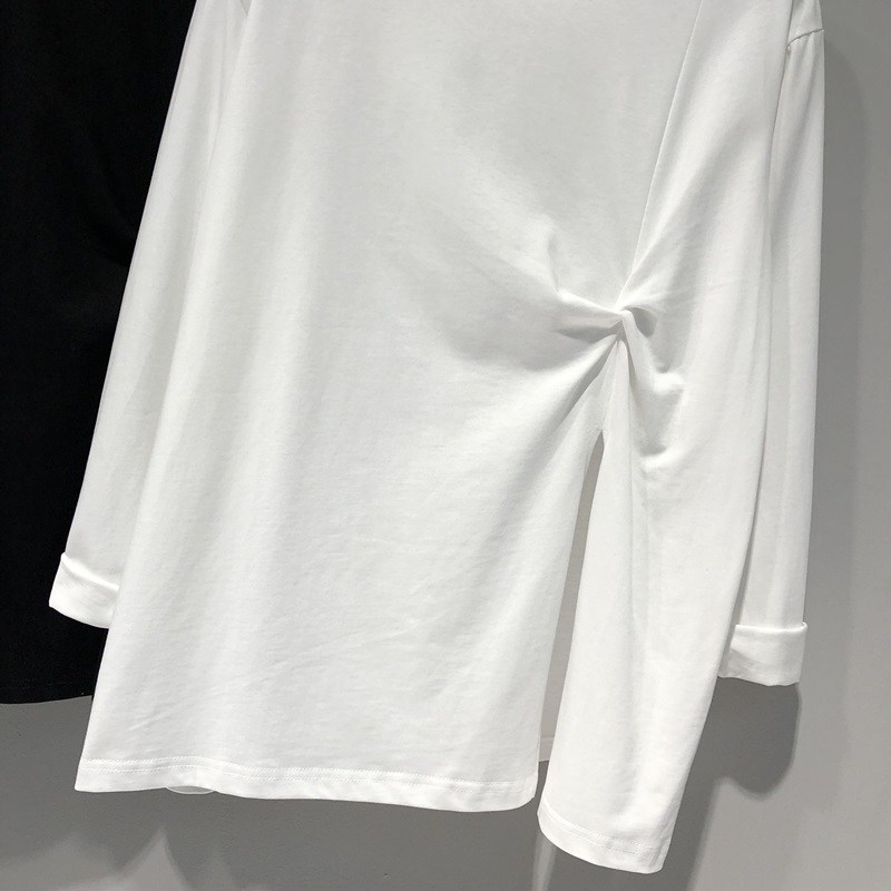 长袖 漂亮打底衫 上衣ins 早秋洋气小衫 白色t恤女宽松不规则开叉大码