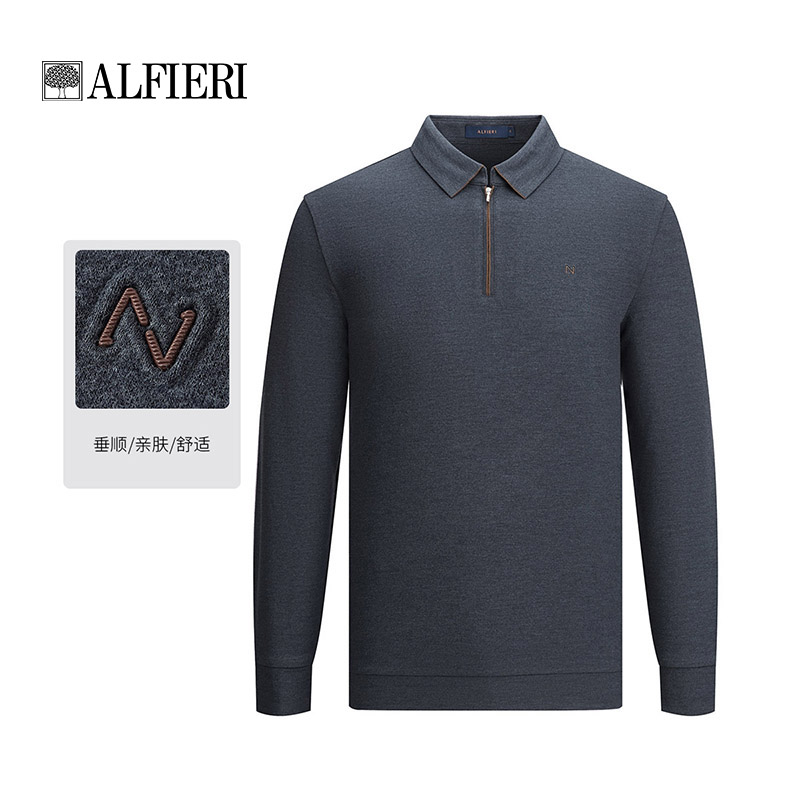 2024秋季 T恤男士 新款 翻领长袖 简约慵懒风拉链POLO衫 艾法利