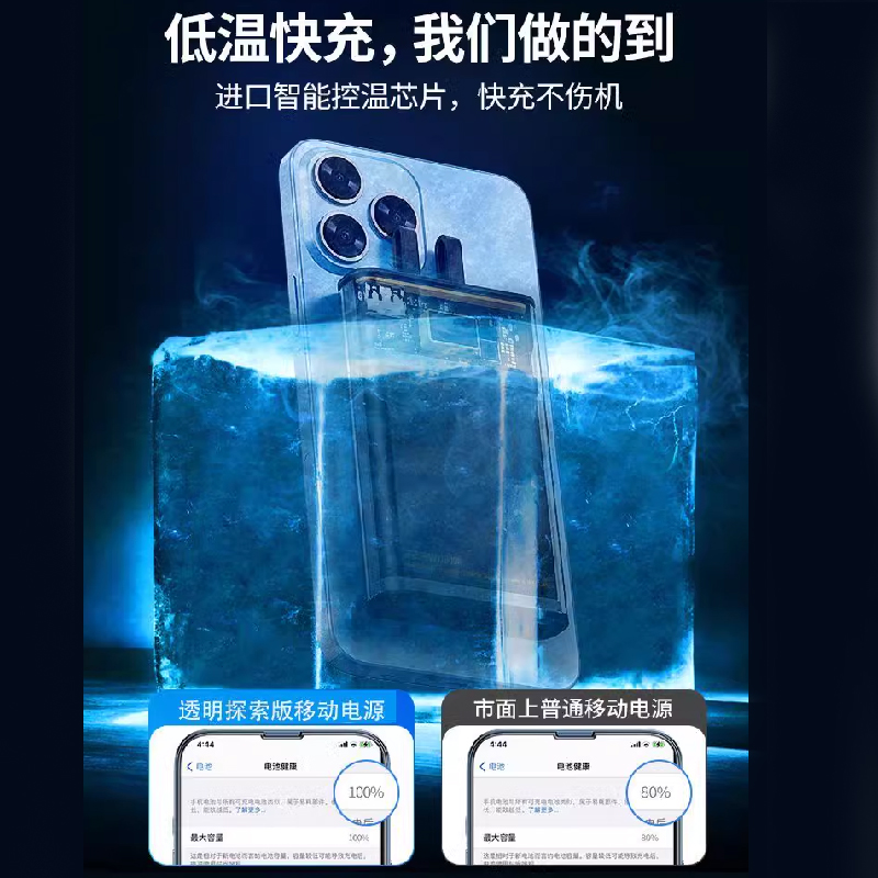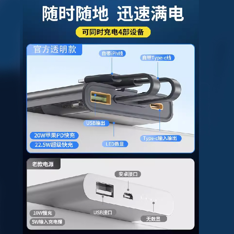 致翼充电宝自带线三合一超薄小巧便携超大容量20000毫安1超级快充pd20w适用苹果华为oppo小米专用12 透明