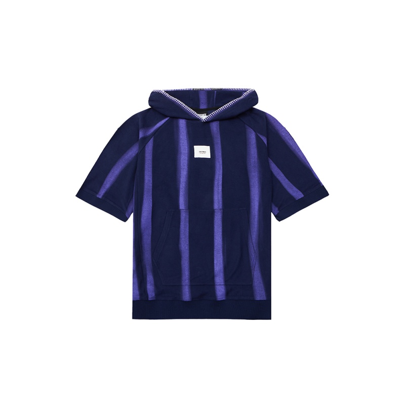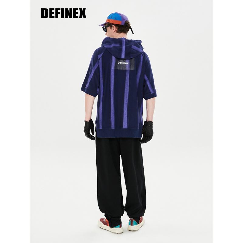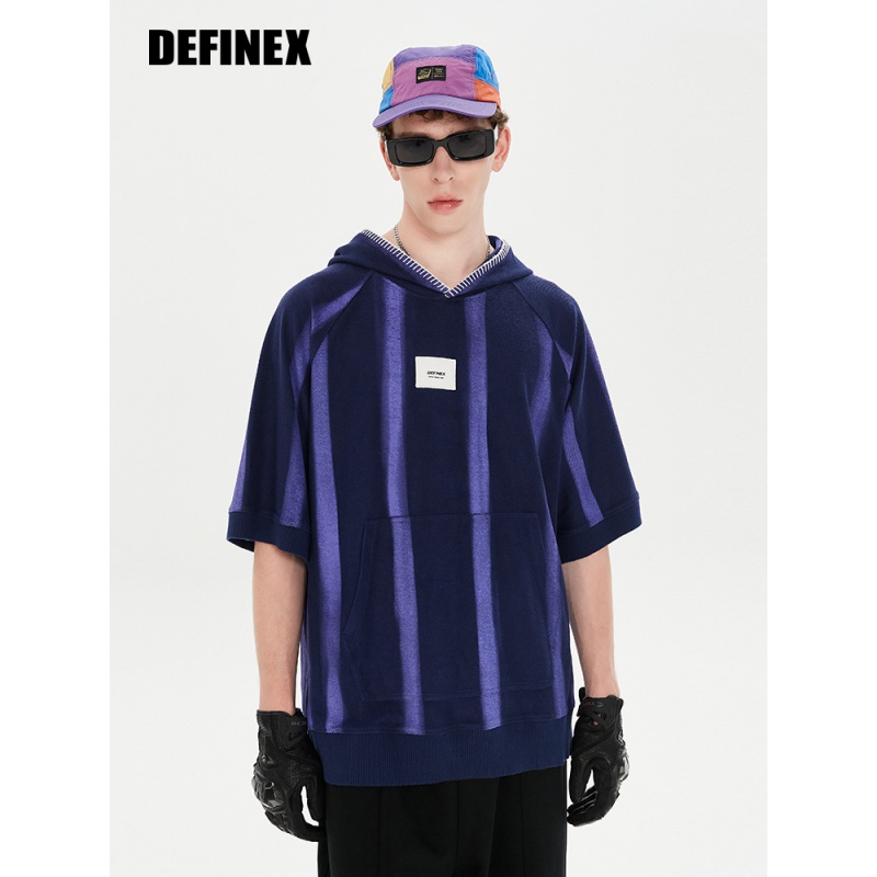 DEFINEX潮牌秋潮酷流行男女同款 宽松印花连帽条纹短卫衣