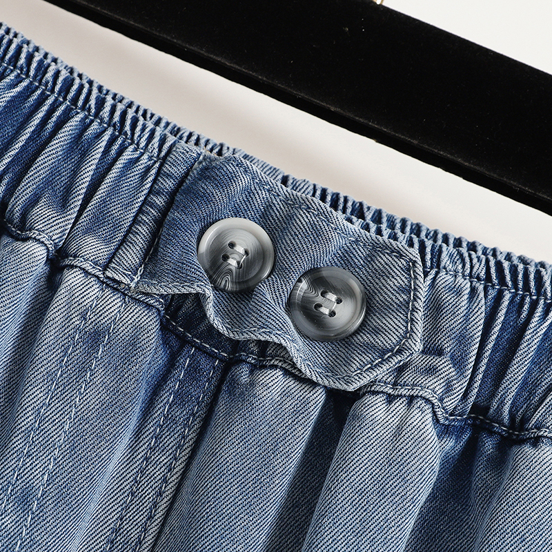 宽松冰丝九分萝卜休闲裤 超大码 薄款 女夏季 高腰天丝直筒哈伦牛仔裤