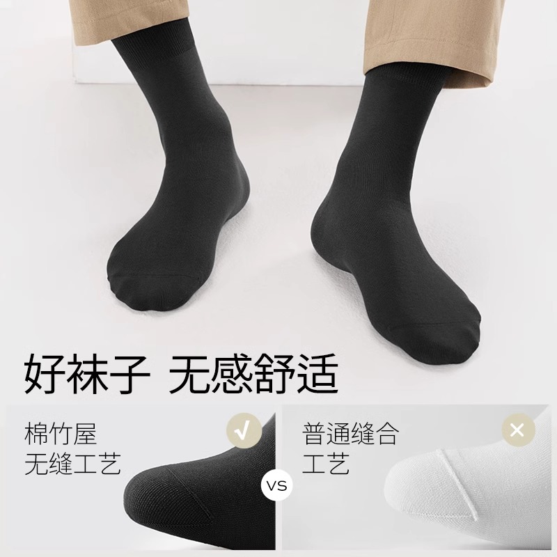 袜子男夏季 中筒袜纯棉防臭7a抗菌无骨吸汗透气黑色商务运动袜 薄款