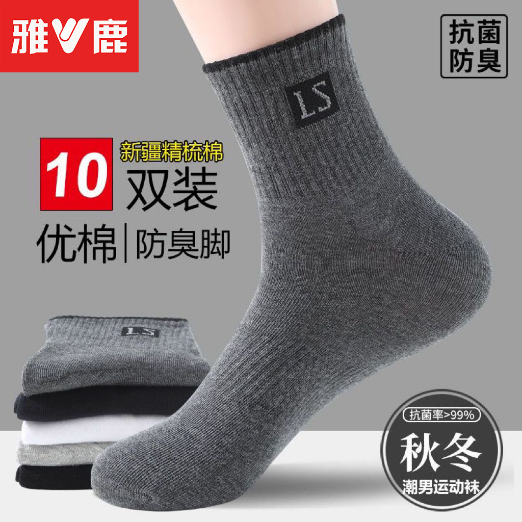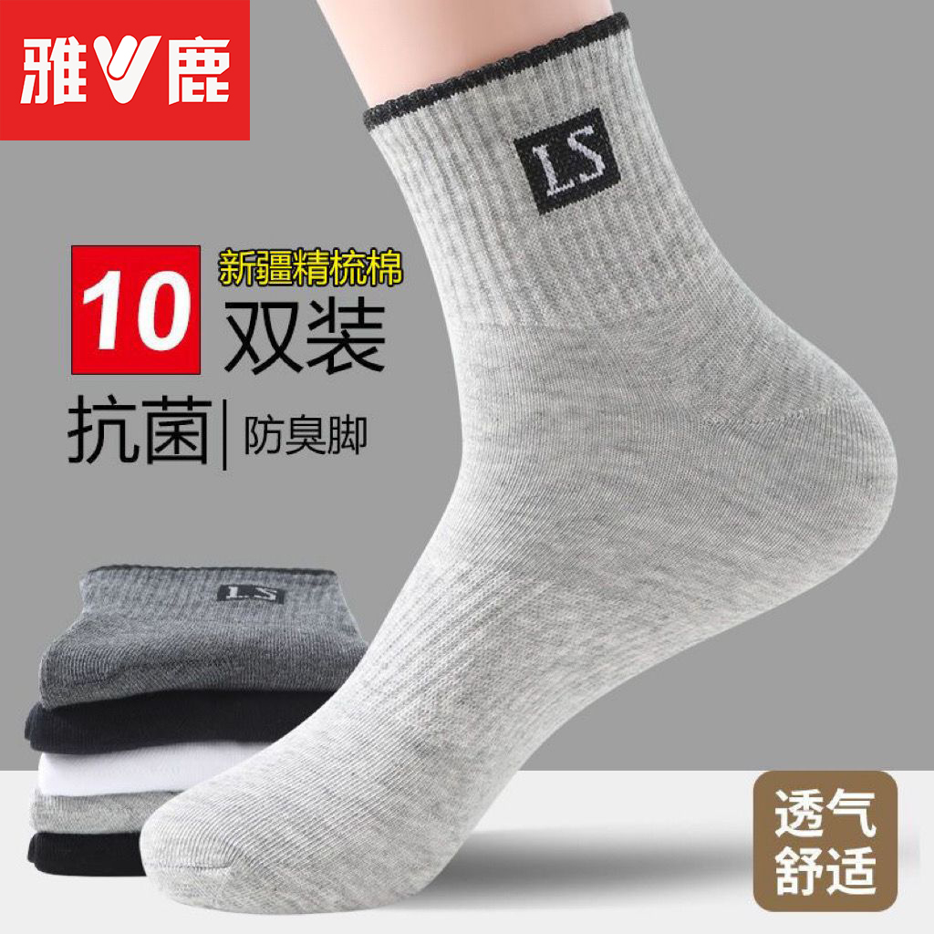 恒源祥诸暨袜子男士 纯棉吸汗防臭运动短袜夏天白色中筒袜男袜 夏季