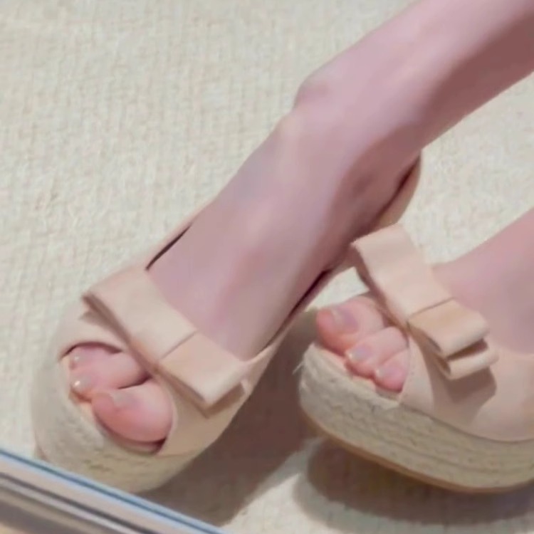 女外穿百搭不累脚罗马凉鞋 草编小个子坡跟鱼嘴凉拖鞋 新款 2025夏季