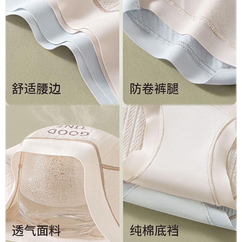 无痕隐形健身瑜伽 三角纯棉透气裆短裤 3件 蕉内银皮508Air女士内裤
