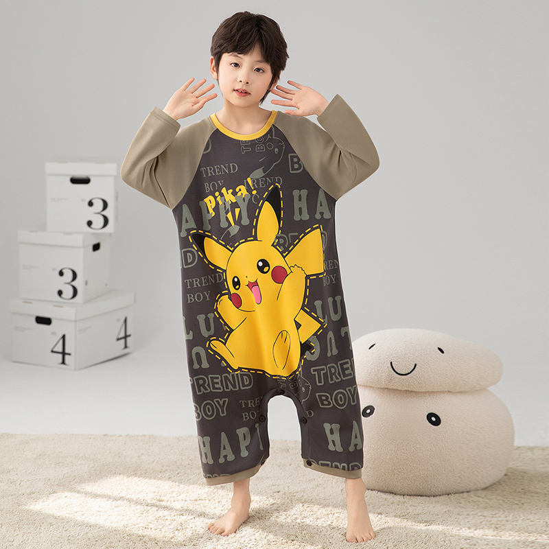春秋夏季 薄卡皮巴拉男孩宝宝纯棉卡通家居服 男童睡衣连体防踢长袖