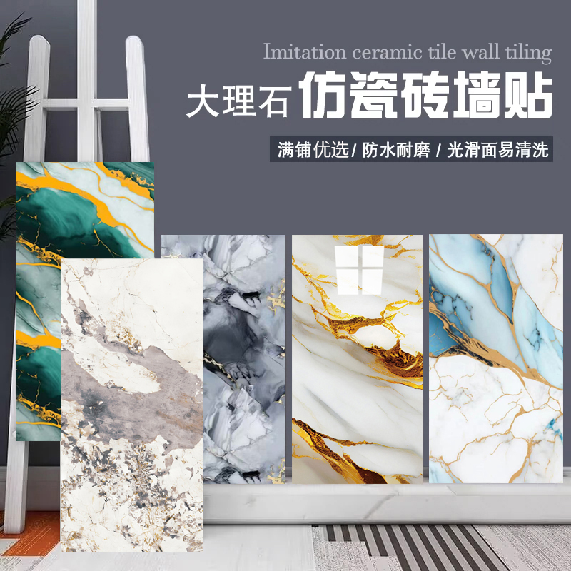 仿瓷砖墙贴大理石防水防潮贴纸墙壁纸墙面卫生间厨房翻新装 饰遮丑