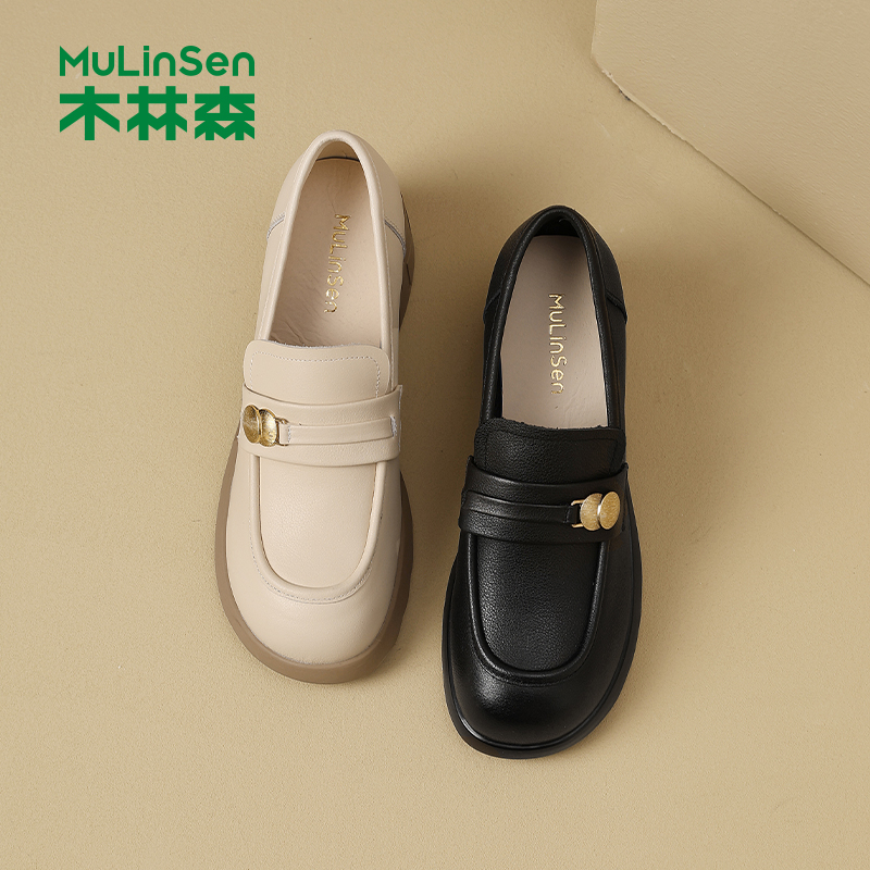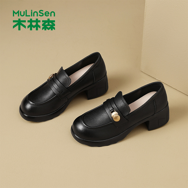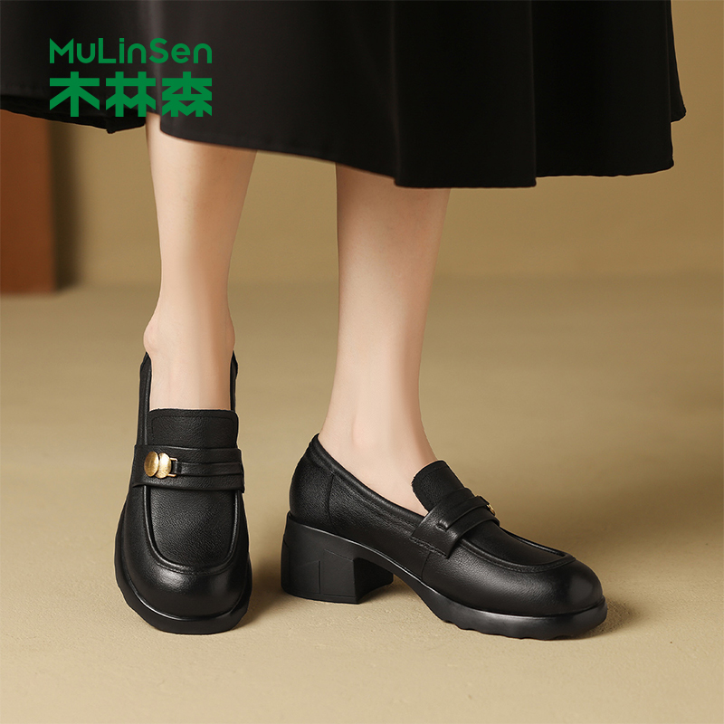 女士通勤百搭小皮鞋 木林森女鞋 粗跟一脚蹬乐福鞋 新款 2025年春秋季