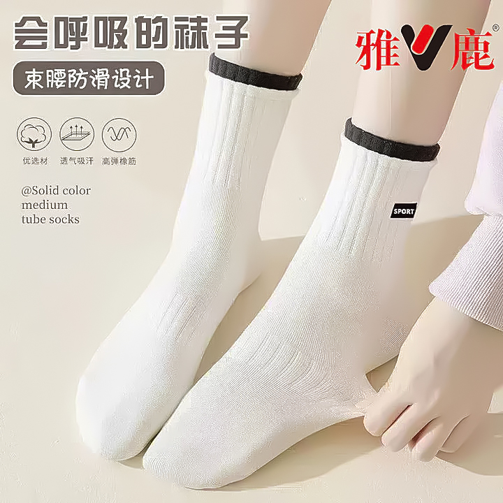 雅鹿袜子女秋冬款 透气中筒袜无骨双罗口长袜束腰防滑抗菌防臭袜子
