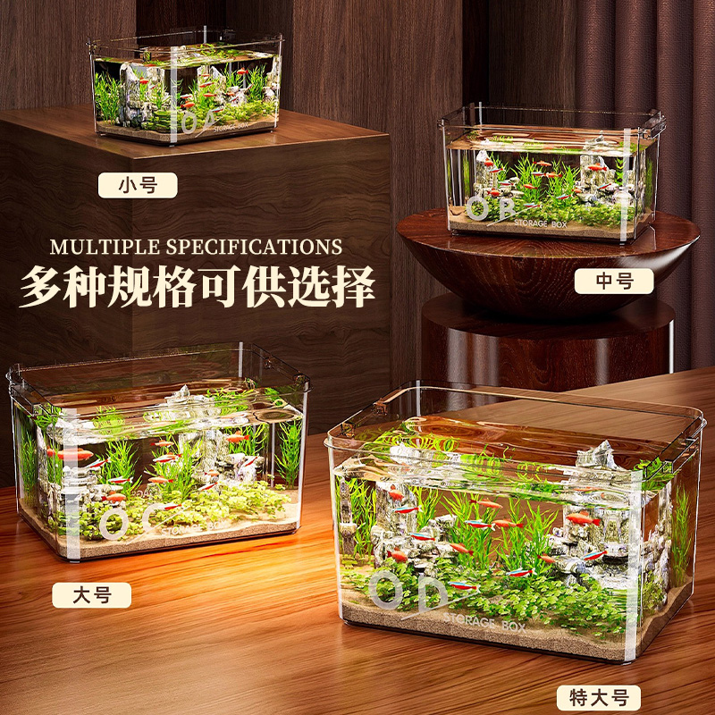鱼缸客厅小型桌面小金鱼乌龟饲养家用2025新款 溪流生态塑料鱼缸