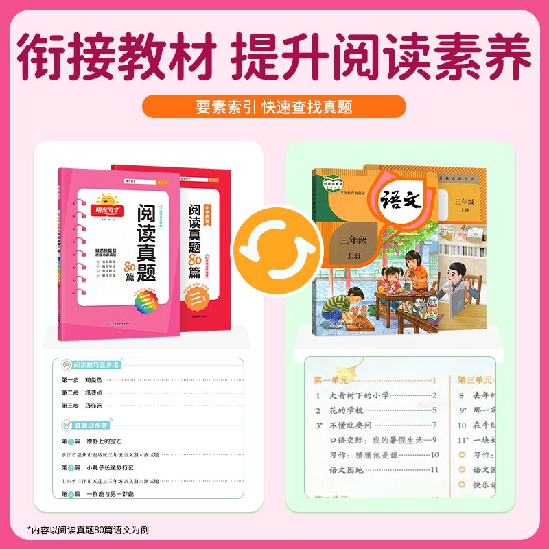 部编阅读理解专项训练书同步练习册阶梯阅读 上册下册一1年级2二3四4三5五6六语文英语人教版 2026阳光同学阅读真题80篇彩虹版 蓝天版