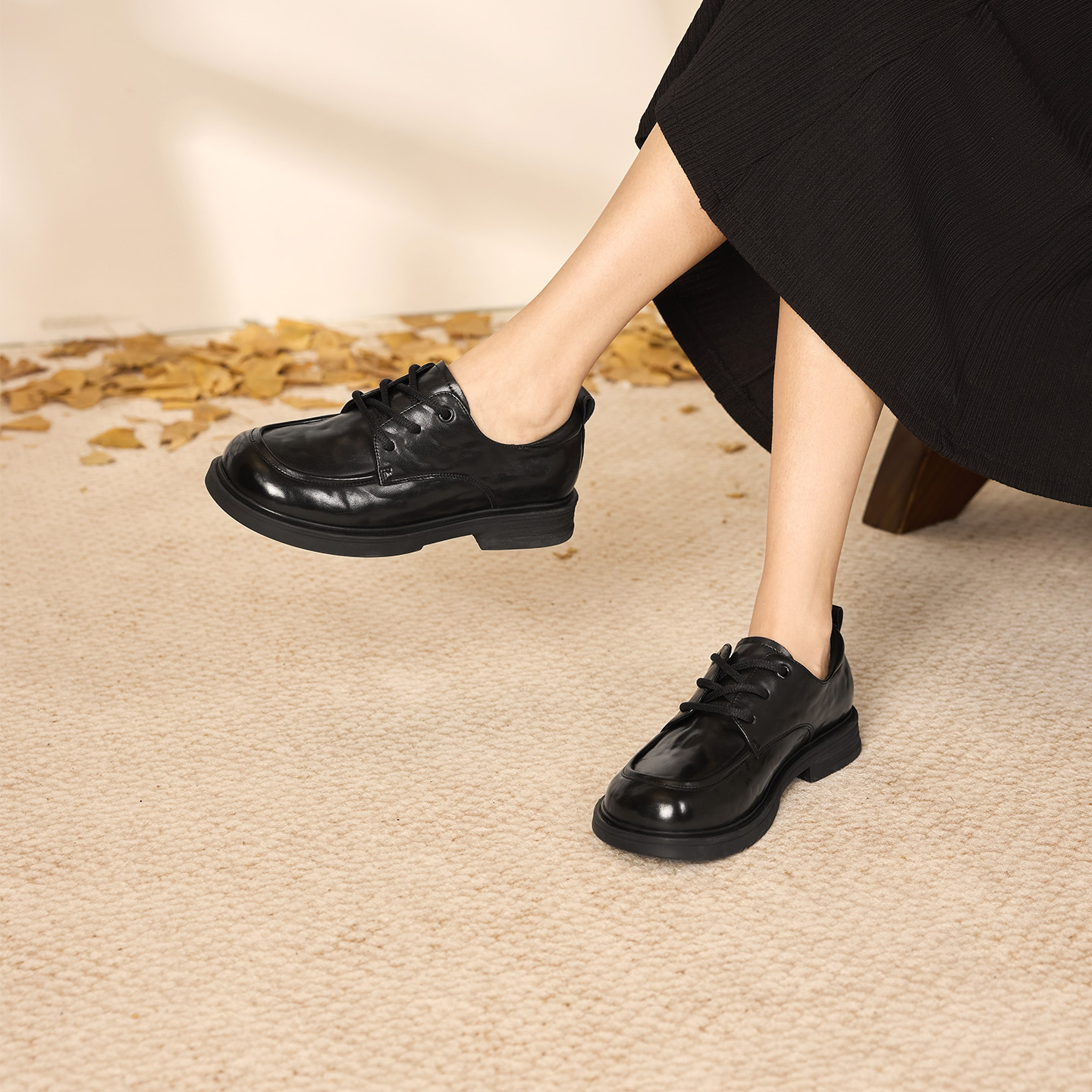厚底鞋 2025秋季 真皮系带舒软鞋 时尚 门店发货 奥康 平底鞋 女鞋