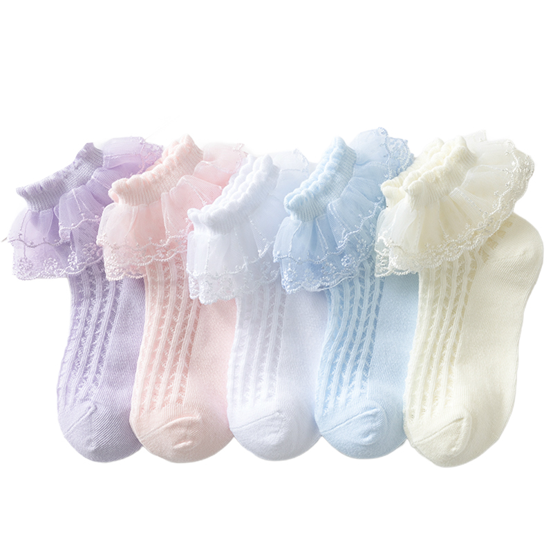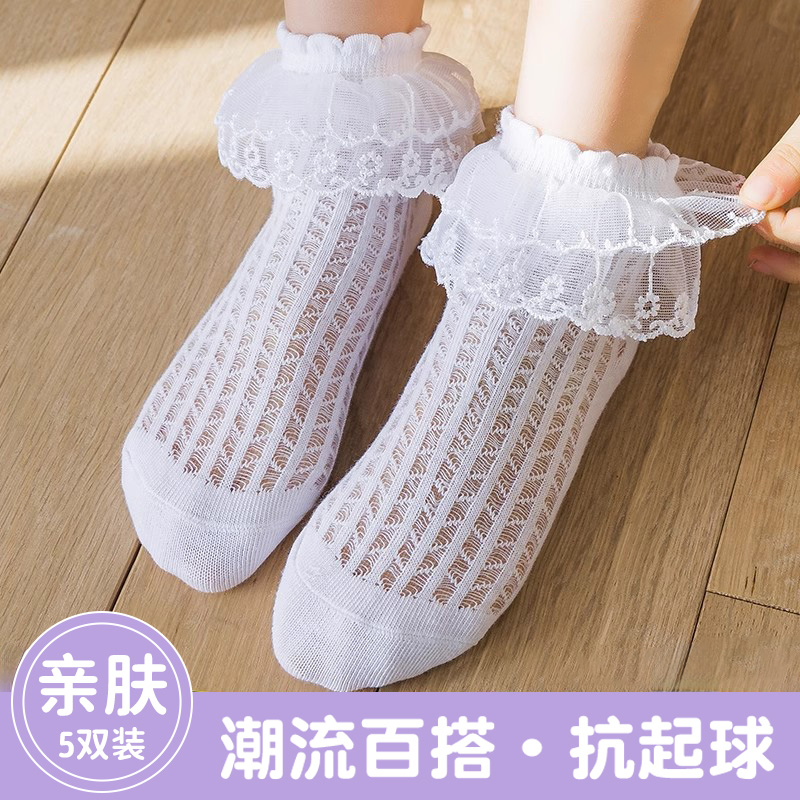 女童双层花边袜子春秋白色舞蹈袜女孩蕾丝公主袜宝宝儿童透气短袜