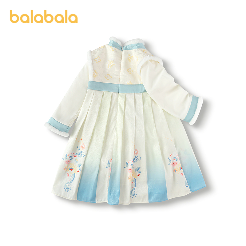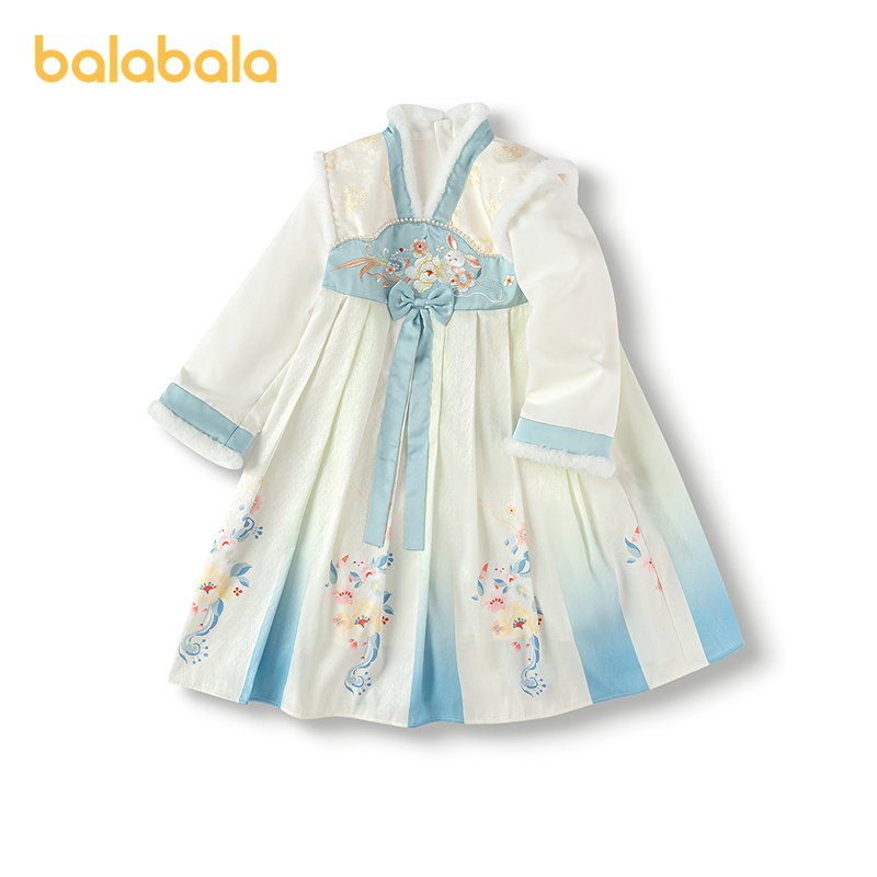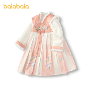 洋气 绣花时尚 巴拉巴拉女童汉服改良襦裙国风连衣裙冬装 裙子新中式